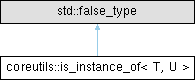Inheritance diagram for coreutils::is_instance_of< T, U >: